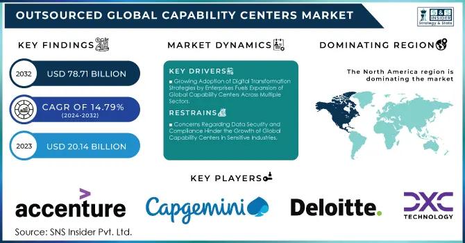 The Outsourced Global Capability Centers Market Size was valued at USD 20.14 billion in 2023 and is expected to reach USD 78.71 billion by 2032 and grow at a CAGR of 14.79% over the forecast period 2024-2032.